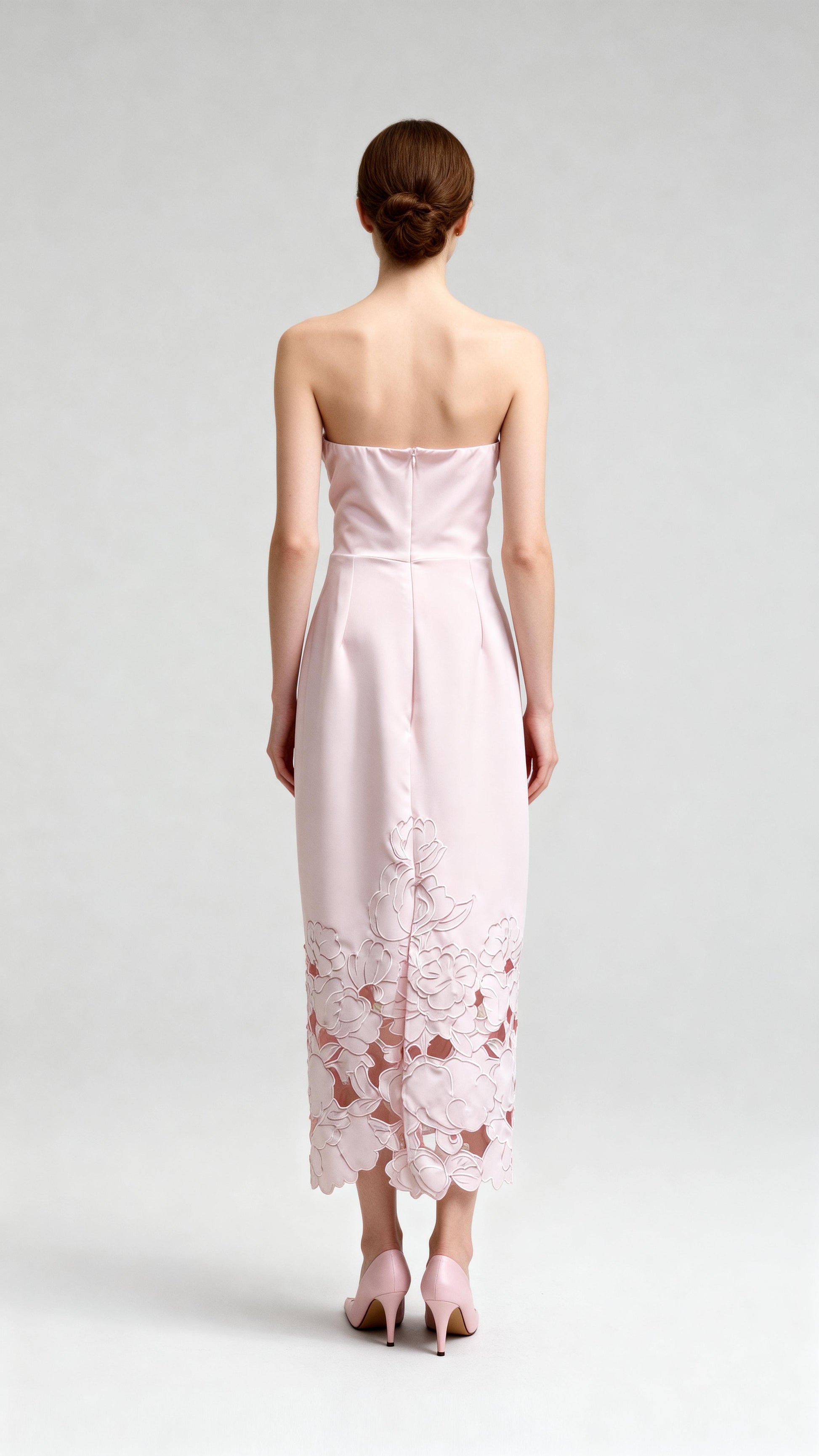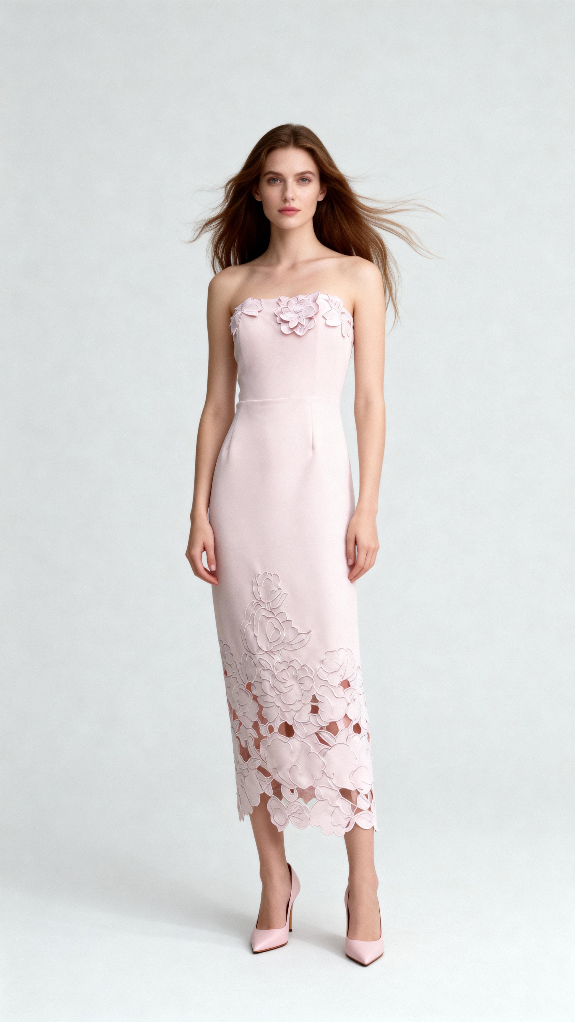 Light Pink Strapless 3D Floral Cutout Dress
