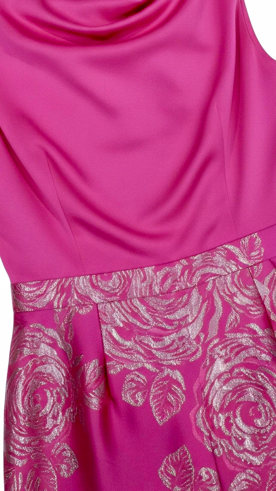 Upper Body:Features a sleeveless draped neckline design, crafted from smooth satin fabric. The silhouette is minimalist and slim-fit, with pleated detailing at the neckline that adds a touch of softness to the look.